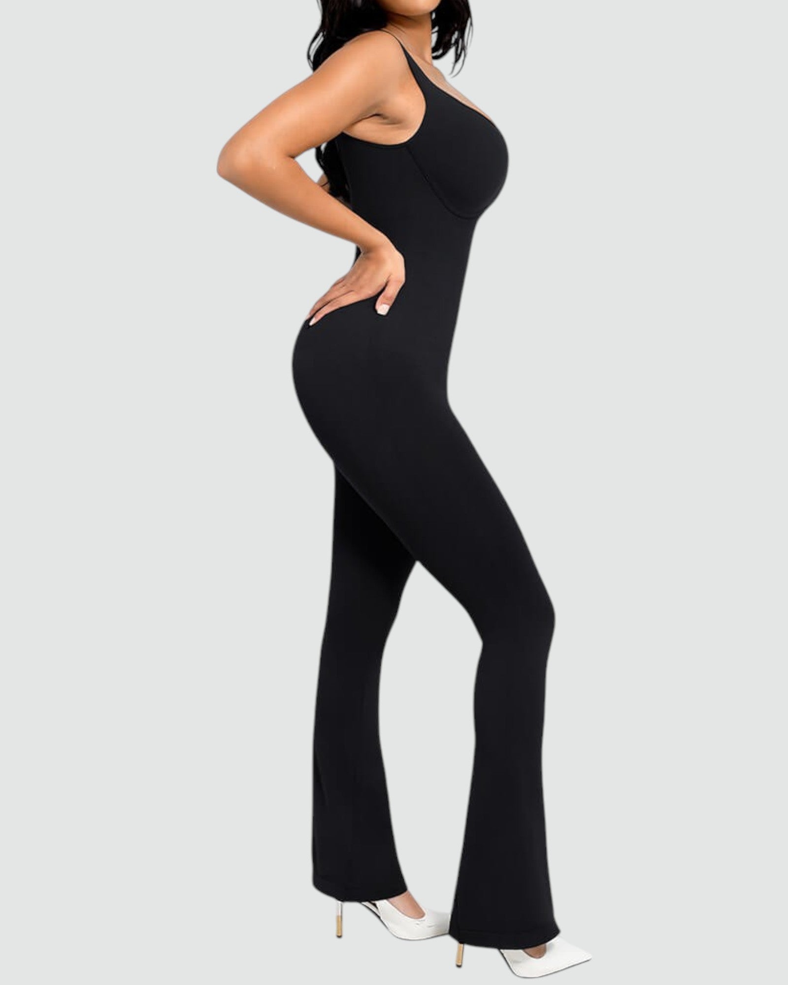For sophistication and shaping, look no further - elevate your wardrobe with the Brooklyn Flare Leg Jumpsuit. Designed to accentuate your curves with seamless contouring and bust support, this elegant one-piece combines style and comfort effortlessly. The flared pants elongate your silhouette for a sleek, and polished look. Perfect for any occasion, this jumpsuit can be dressed up or down. Confident shaping has never looked this chic.